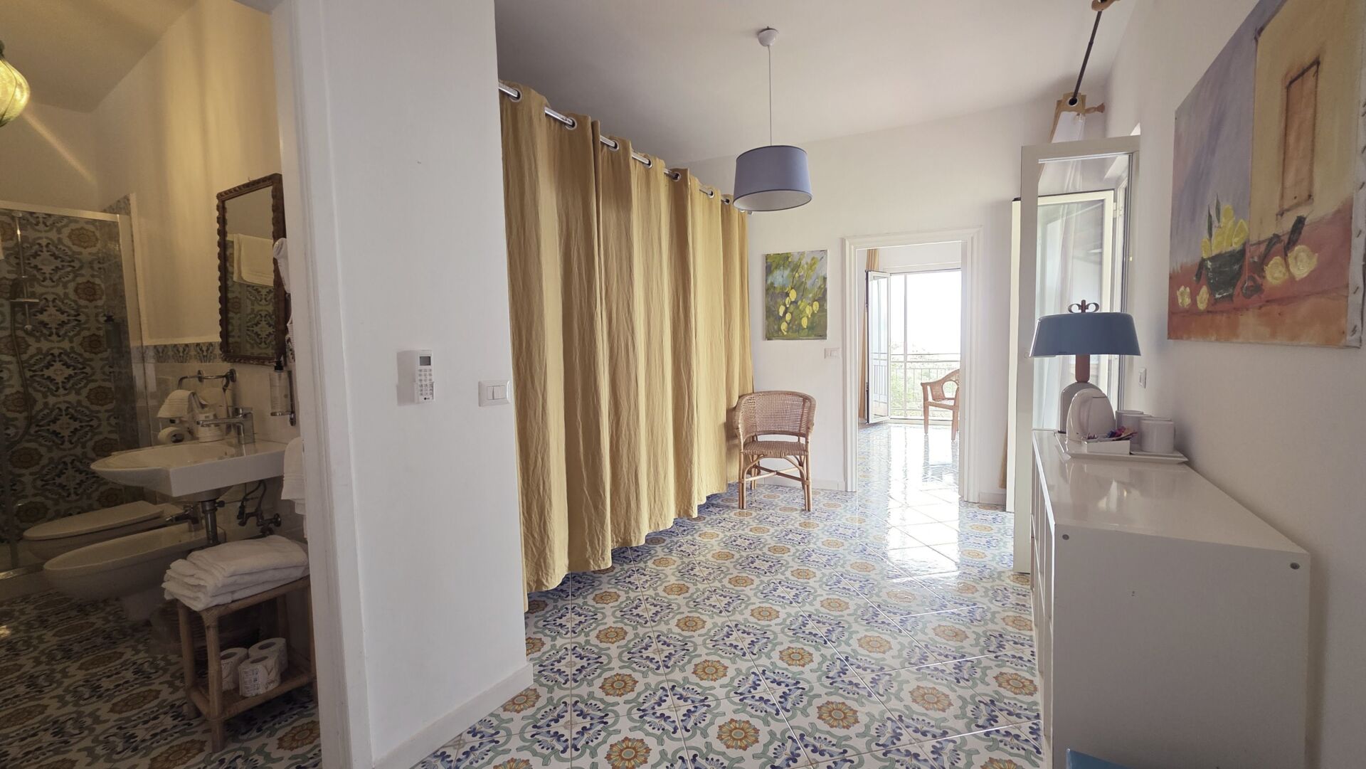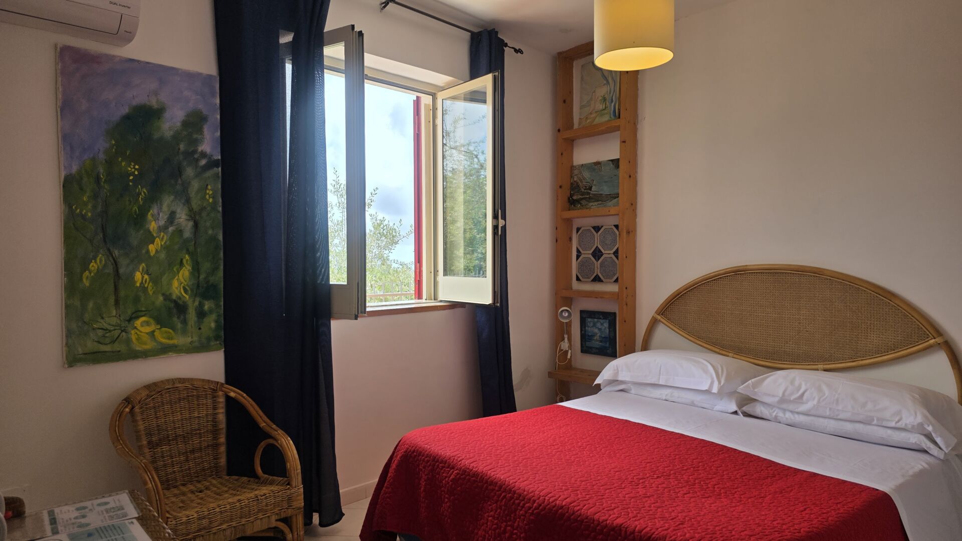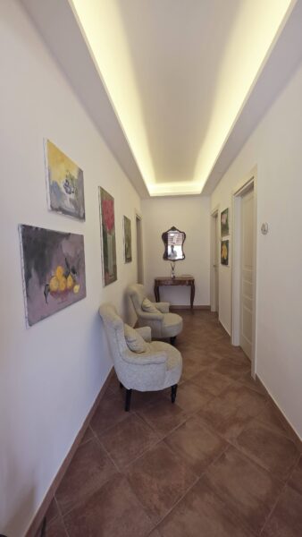 Our apartments and rooms have been designed to offer you the utmost in modern comfort, while preserving the rustic charm of our estate. Each space is unique and deeply rooted in the local area: Private Art Gallery: Each room is adorned with original paintings by Claudio Ruoppo, works that lend an exclusive and personal artistic touch to your stay. Respect for the Local Area: A Sustainable Welcome