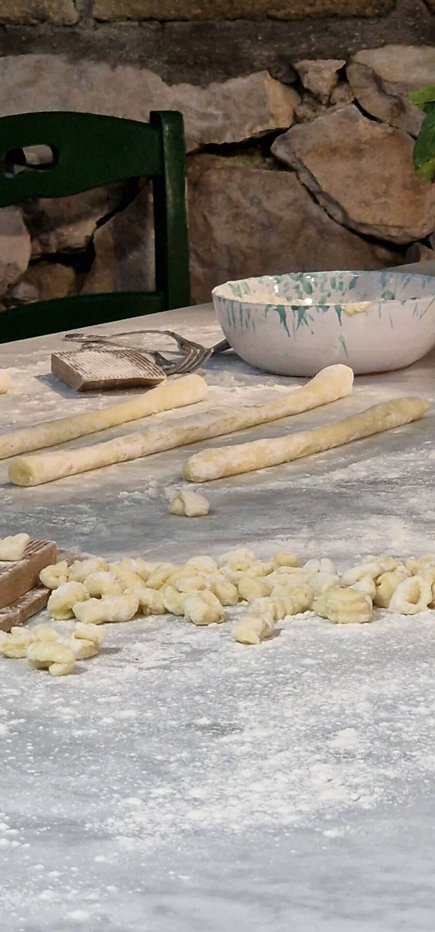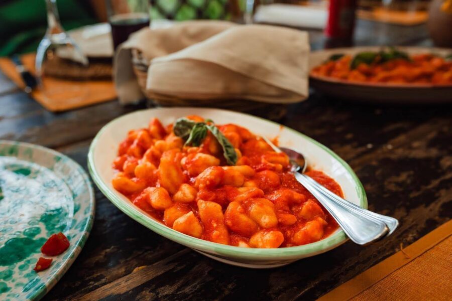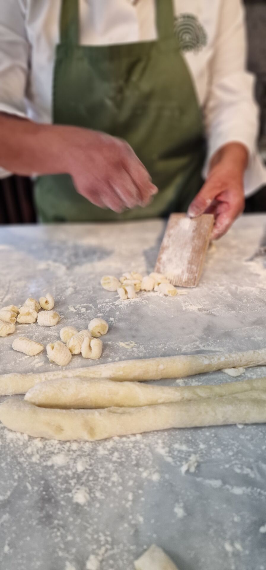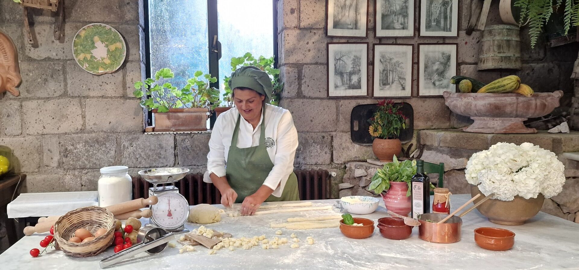 It will illustrated the several phases of the fresh pasta making: the typical and famous ravioli of the Campania region filled with fresh ricotta and herbs, as well as the gnocchi dressed with traditional sauces, for example the sauce with the pomodorini of Piennolo vesuviano quality which will be produced, cooked and served from the same guests.