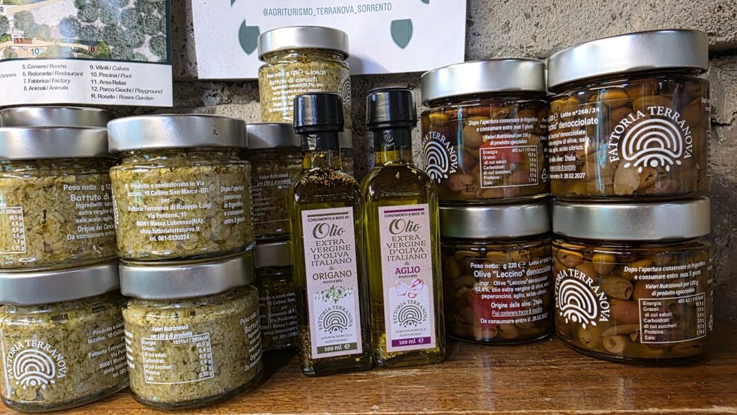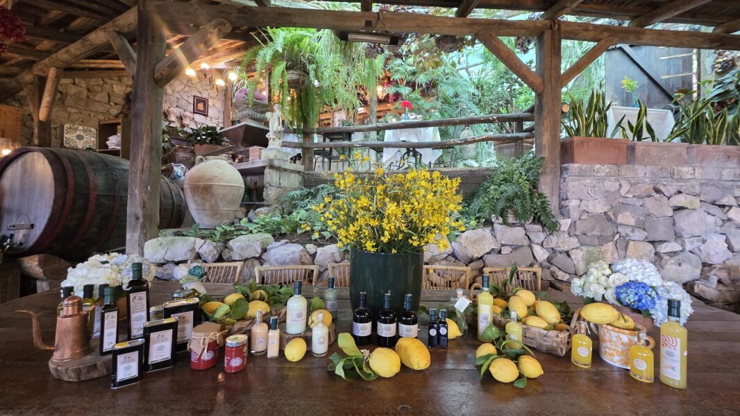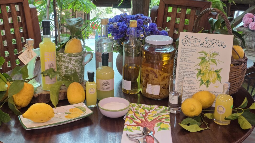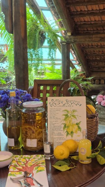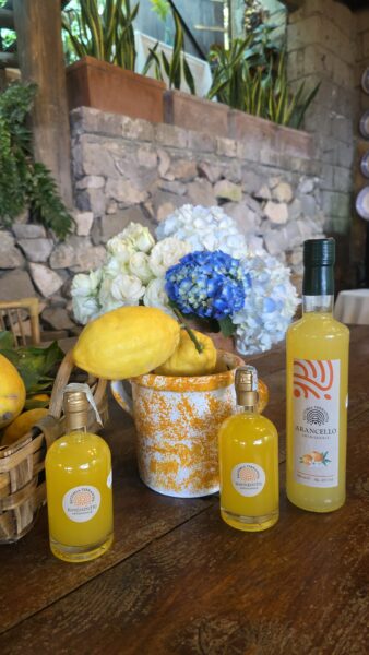 Composizione:1 Limoncello 50cl,1 Mandarinetto 50cl,1 Nocino 50cl,1 Liquore di Basilico 50cl ,1 Marmellata Limoni 360gr,1 Marmellata Arance 360gr,1 Marmellata di Fichi 360gr,1 Baba` al limoncello 500gr,1 Olio al peperoncino 25cl,1 Olio al limone 25cl,1 Olio extravergine d’oliva 50cl,1 pate` olive verdi,1 pate` olive nere,1 Passata di pomodori,1 Pasta Scialtielli al limone 500gr,1 Vino Rosso Aglianico della Fattoria,1 Vino Bianco ,Falanghina della Fattoria + 3 limoni freschi di Sorrento.
