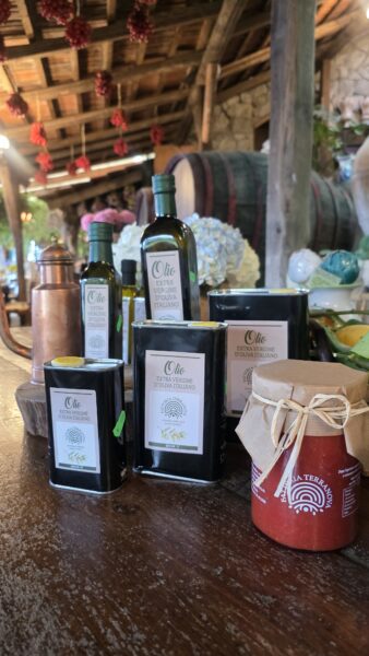 Composizione:1 Finocchietto 50cl,1 Mandarinetto 50cl,1 Nocino 50cl,1 Limoncello 50cl,1 Marmellata Amarene 360gr,1 Marmellata Arance amare 360gr,1 Marmellata di Albicocche 360gr, 1 Biscotti della nonna 250gr,1 Olio al basilico 25cl,1 Olio all’Aglio,1 Olio extravergine d’oliva 50cl,1 Olive verdi in salamoia 360gr,1 Olive verdi condite 360gr,1 Passata di pomodori,1 sacchetto origano essiccato,1 sacchetto peperoncino essiccato, 1 Pasta artigianale 500gr.
