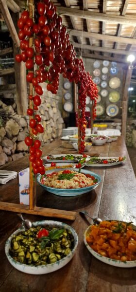 Il tutto accompagnato da un buon bicchiere di vino rosso e le gustose confetture dell’Azienda Agricola Fattoria Terranova.