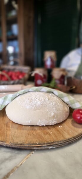All’arrivo nella splendida cornice della fattoria, l’esperienza inizierà con una spiegazione tecnica sull’olio extravergine d’oliva di nostra produzione, accompagnata dall’assaggio di pane e olio. Seguirà un approfondimento dedicato alla tecnica di produzione della pizza, durante il quale verranno illustrati i segreti dell’impasto e della cottura; gli ospiti saranno coinvolti attivamente nella lavorazione, così come in quella della mozzarella, venendo dotati per l’occasione di appositi grembiuli.