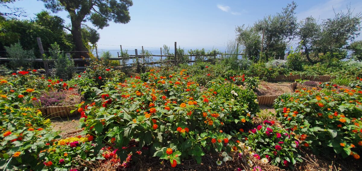 Il tutto circondato da una siepe di Ulivi, e piante da frutto di varietà antiche autoctone.