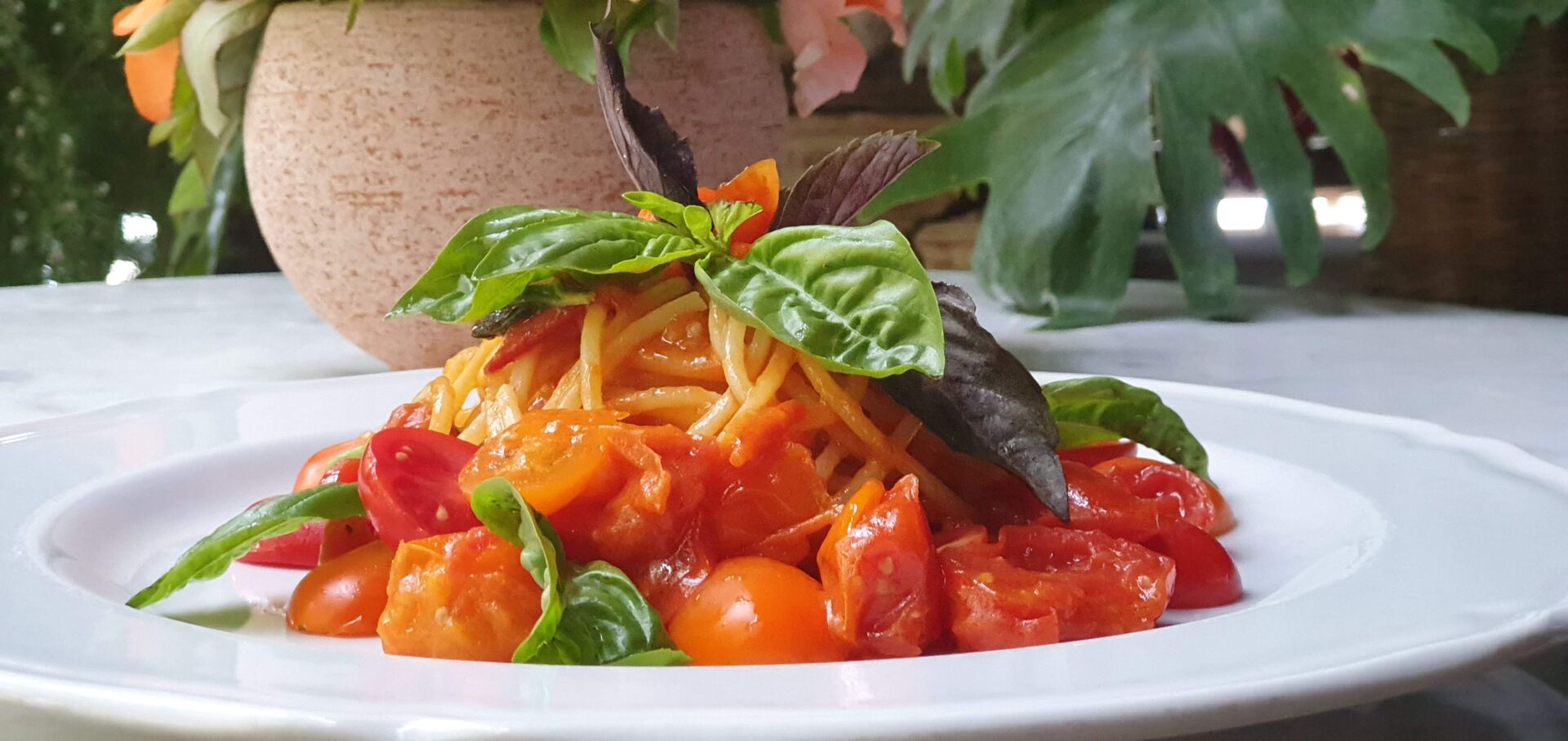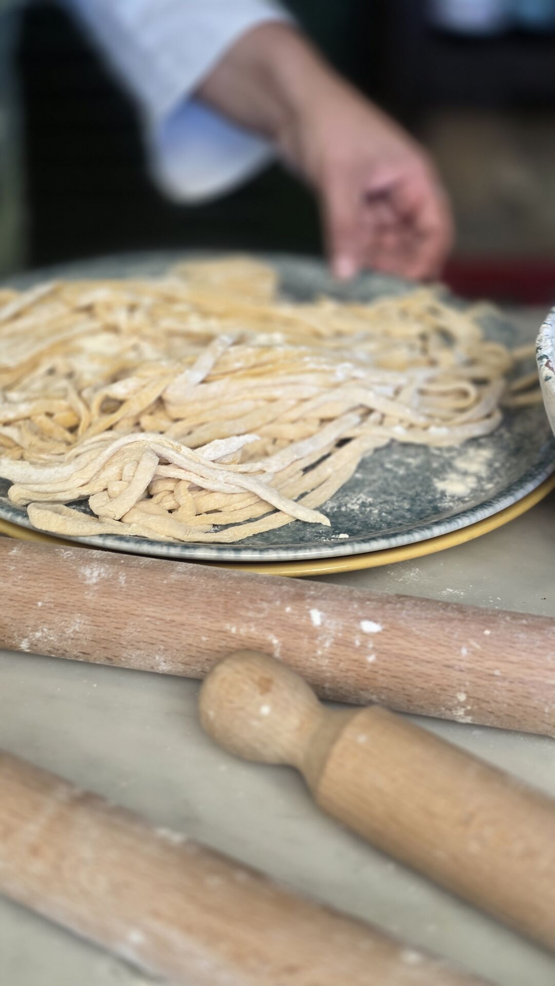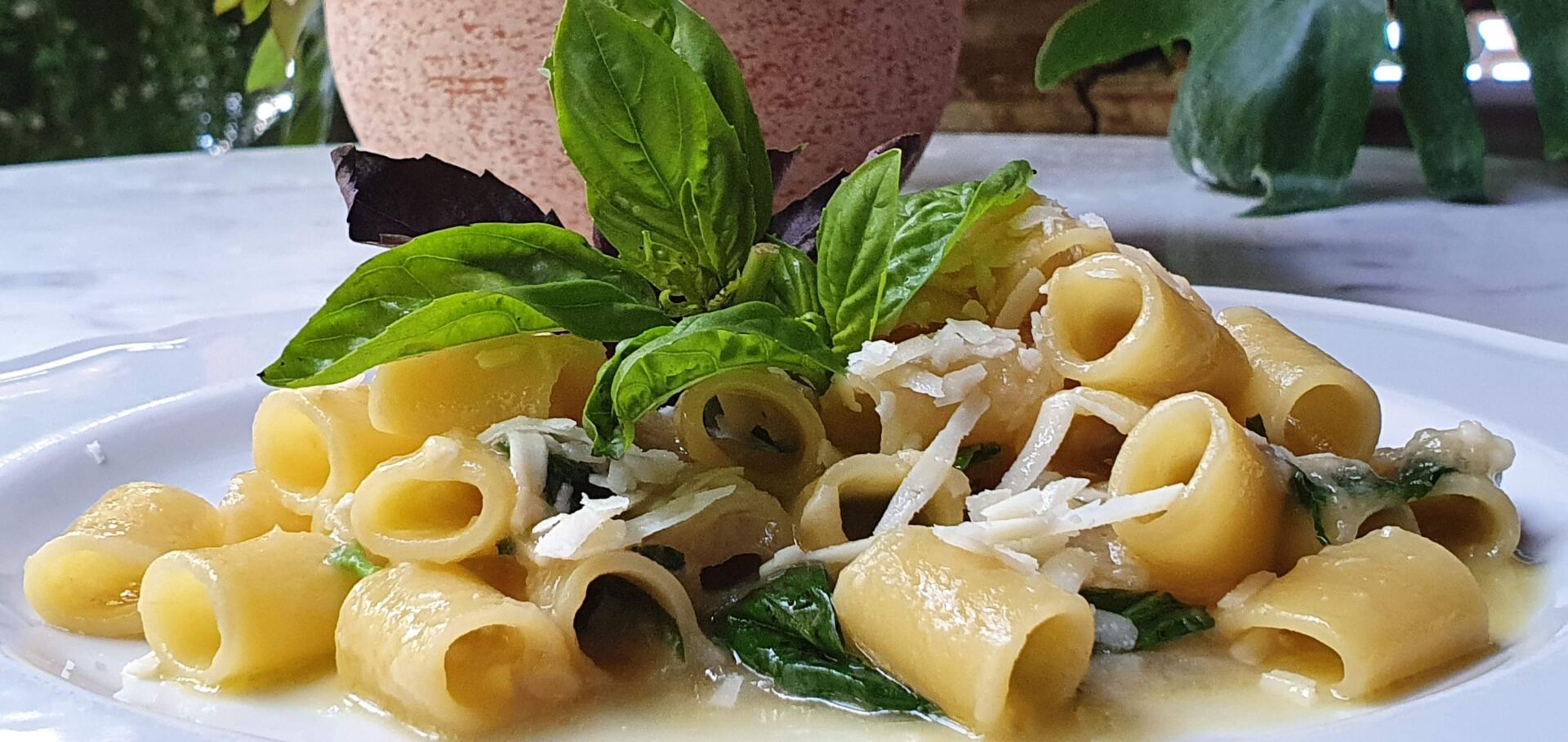 “Tubettone with white onion, Pecorino Romano, and basil”