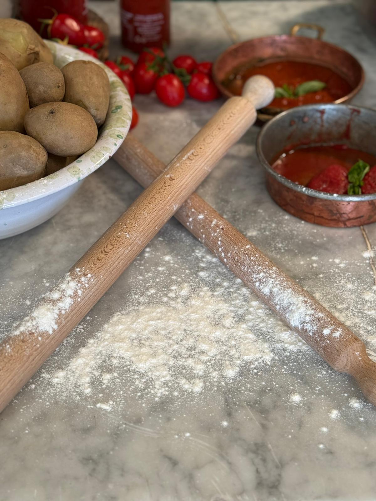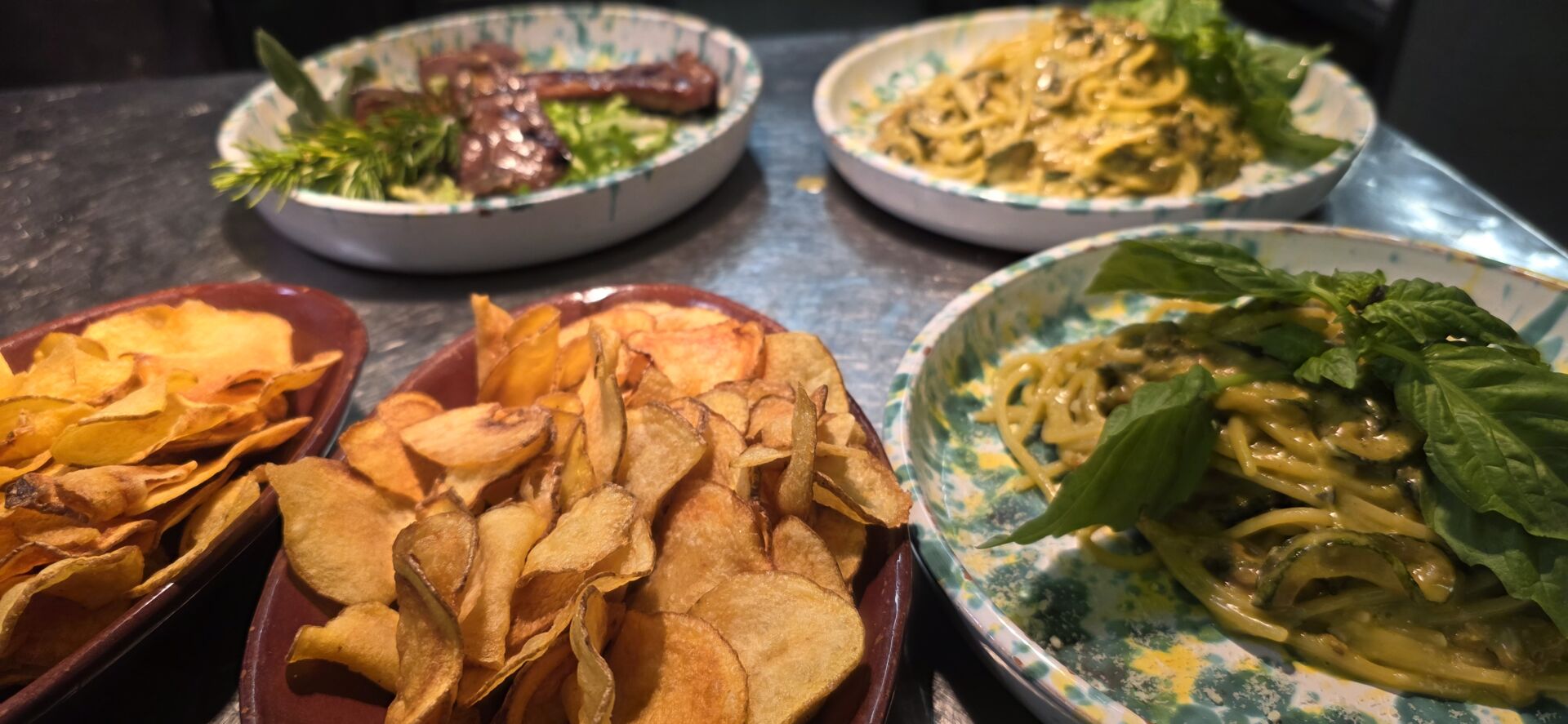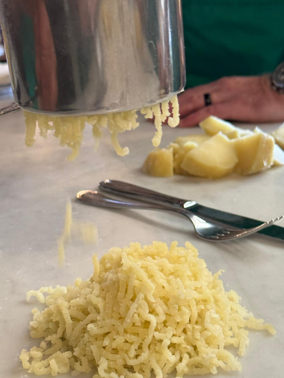 “Tubettone with white onion, Pecorino Romano, and basil”